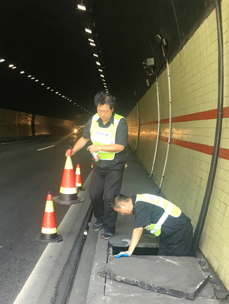 8月3日,公司機(jī)電設(shè)備維養(yǎng)中心主任助理葉俊帶領(lǐng)三名隊(duì)員,頂著高溫,對(duì)塘嶺溫向隧道北洞口路燈電纜進(jìn)行了重新鋪設(shè),讓隧道口罷工多日的9盞路燈重放光明,有效保障了夜間行車安全。 塘嶺隧道全長(zhǎng)935米,于1997年底投入使用。為給夜間司乘人員提供明亮安全的通行環(huán)境,公司在塘嶺雙向隧道入口約100米位置各安裝了一排路燈,每隔10米一盞,共計(jì)9盞。前不久,溫向隧道路燈900余米的供電電纜遭不法分子盜取,導(dǎo)致9盞路燈集體罷工,如不及時(shí)修復(fù)將給過(guò)往車輛帶來(lái)安全隱患。