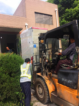 14日上午,寧向隧道實(shí)施了二類封道,維養(yǎng)中心、黃土嶺隧道所與廠家(浙江耀明電力設(shè)備有限公司)施工人員一起,在起重吊機(jī)、叉車等機(jī)械配合拖纜下,合力將6組重達(dá)數(shù)噸配電柜等設(shè)備搬運(yùn)至配電房?jī)?nèi)并恢復(fù)了前一天拆除的護(hù)攔,等待第二天技術(shù)人員的停電安裝。同時(shí),為了第二天盡早開工,中心和黃土嶺提前落實(shí)了油料和參與人員,并預(yù)訂了盒飯,力爭(zhēng)一天時(shí)間完成所有安裝工作。