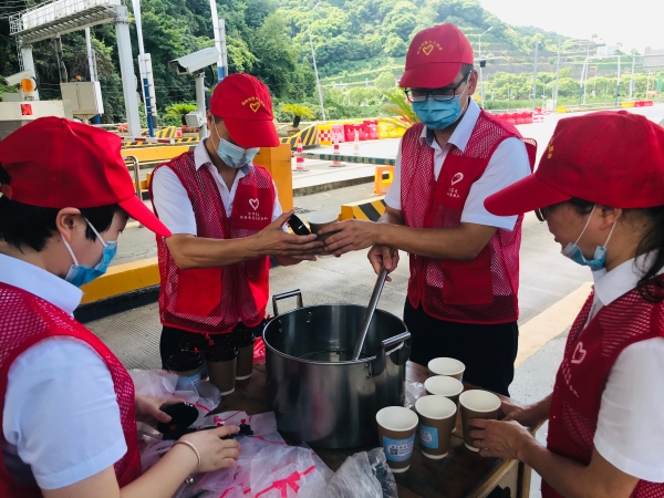 活動現(xiàn)場,志愿者們身穿耀眼的紅馬甲,面帶微笑,顯得格外耀眼動人。雖然大家的衣服早已被汗水浸透,但熱情周到的服務,獲得了過往司乘的紛紛點贊。臨海南收費所通過開展“夏日送清涼”活動,不僅送去了高速公路工作者的愛心,同時也拉近了與司乘人員之間的溝通交流,贏得了過往司乘人員的好評,塑造了良好的窗口形象。 除了為司乘送“清涼”,該所也真正做到把清涼送到收費一線,把關懷送到員工心坎,保障員工的健康權益,為員工提供了清涼油、克痢痧、午時茶、藿香正氣水等防暑降溫物品。食堂每天精心熬制不重樣甜湯,大家喝到提前冷涼的甜湯紛紛表示,三伏天里,雖然感到悶熱難受,但在休息的時候能喝上一碗涼涼的甜湯,真幸福。并保證一定會克服酷暑高溫,堅守崗位,盡職盡責,積極投身于收費、交通疏導工作中。