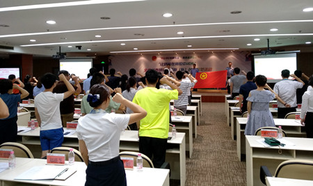 圖為全體團(tuán)員重溫入團(tuán)誓詞