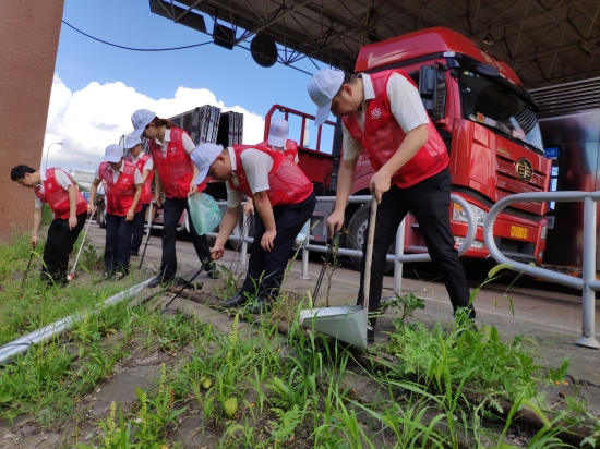 活動現(xiàn)場,身著紅馬甲的志愿者們,拿著垃圾夾、垃圾袋、掃把、畚斗等工具,重點清理收費(fèi)站內(nèi)外廣場的煙頭和白色垃圾。由于上下高速時有不少司乘人員直接把垃圾丟向兩側(cè)邊溝,導(dǎo)致收費(fèi)所兩側(cè)邊溝垃圾較多。盡管天氣炎熱,但志愿者們自行分組,三人一組、五人一隊,充分發(fā)揮不怕苦不怕累不怕臟的精神,并互相配合集中對一些死角進(jìn)行清理。
