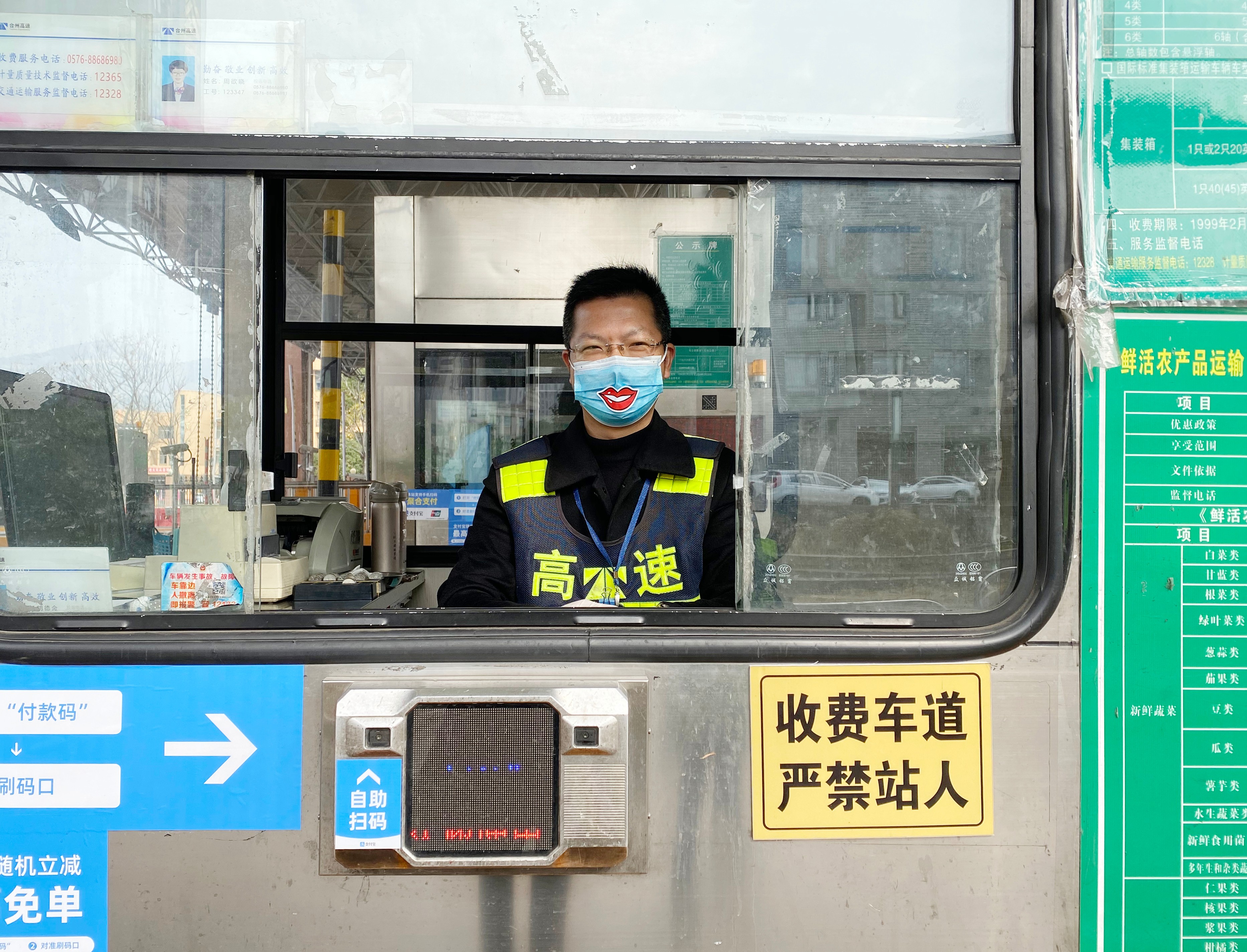 我“形”我秀,文明服務(wù) “你的口罩好可愛,好特別”。 新春將近,這聲音來自廣大司乘,縈繞在臺州收費所崗?fù)?。雖然疫情形勢依舊嚴(yán)峻,但是暖心文明服務(wù)更要堅守。收費員上崗時必須戴上口罩、手套等防護(hù)措施,臺州收費所堅持以微笑傳遞服務(wù),反對一層薄薄的防護(hù)疏遠(yuǎn)與廣大司乘的距離,為了維護(hù)窗口形象,提升文明服務(wù),做到冷冬暖心,臺州收費所動腦動心出真招,將一枚枚笑容“印在”口罩上,一個個小小的笑臉,溫暖著來來往往司乘人員焦灼的心,在做好疫情防控工作的同時,也為收費服務(wù)增添一絲趣味。 臺州收費所送上一份安全、一心祝福、一抹微笑、一套年味兒,這個回家旅程您還冷嗎? 袁莉
