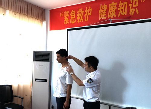 圖為授課現(xiàn)場(chǎng) 授課老師向水平為大家講述了現(xiàn)場(chǎng)心肺復(fù)蘇術(shù):判斷呼吸→高聲呼救→擺體位→打開氣道→人工呼吸及如何進(jìn)行按壓與吹氣,隨后他授以簡(jiǎn)單的醫(yī)學(xué)理論知識(shí),對(duì)高血壓、心臟病、糖尿病等疾病的預(yù)防作了普及。當(dāng)談及上班族普遍面臨的不樂(lè)觀的嚴(yán)峻現(xiàn)實(shí):受肩周炎、頸椎病、腰椎間盤突出等職業(yè)病困擾時(shí),向老師以現(xiàn)場(chǎng)演示的方式教大家?guī)渍袀鹘y(tǒng)的中醫(yī)方法——穴位按摩,鼓勵(lì)大家自己動(dòng)手,通過(guò)按摩這種最直接的方法,緩解不適。