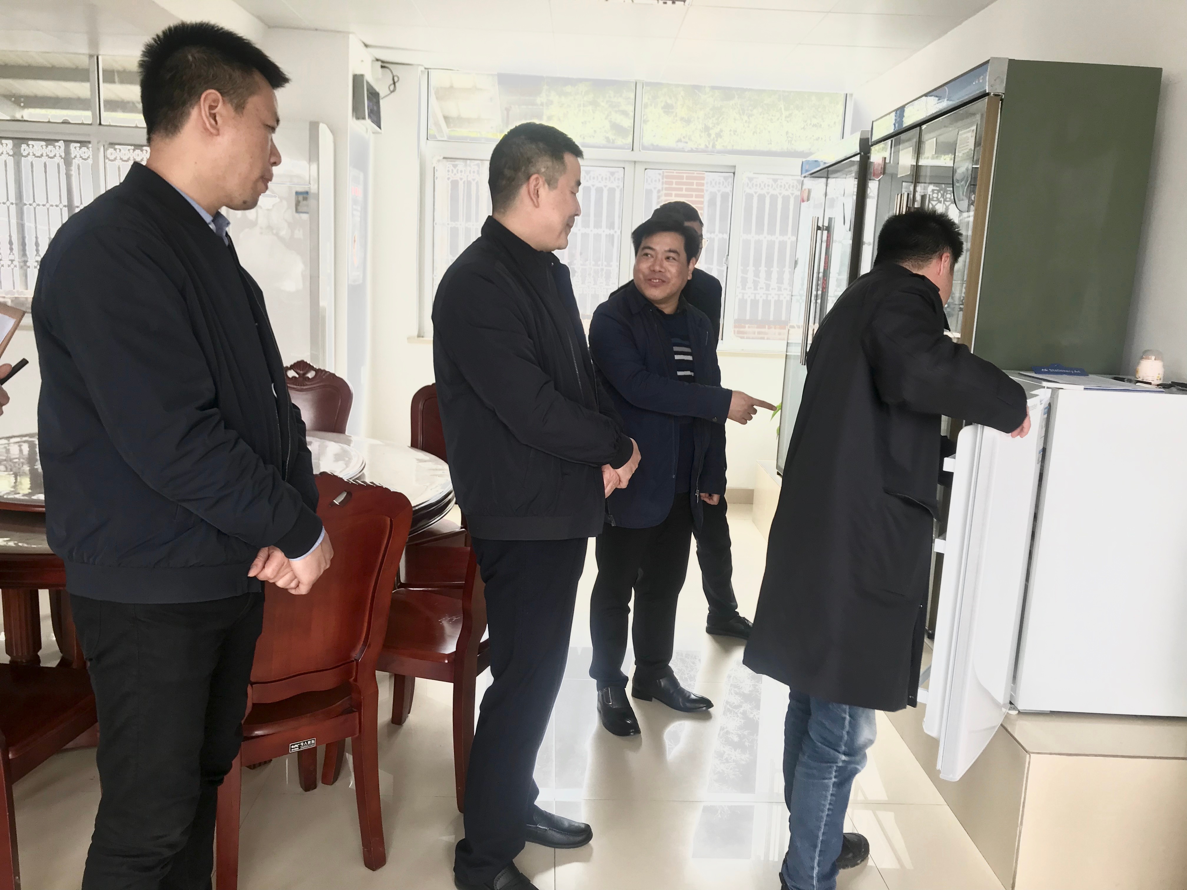 (圖為參觀食堂留樣樣品) 王根法一行人先后參觀了食堂、餐廳、寢室、閱覽室、陽光房等,在參觀的過程中,杜佳介紹了收費所的整體運行情況,食堂管理制度等,在寢室內(nèi)務(wù)方面,他對床單要怎么鋪,被子要怎么疊,臉盆、毛巾、牙杯要怎么擺放等作了詳細(xì)講解,雙方相互交流分享好的經(jīng)驗。