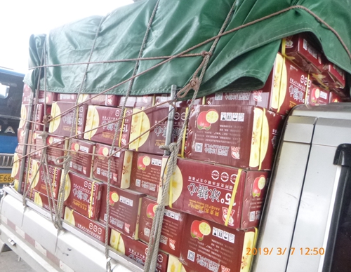 圖為綠農(nóng)車運輸?shù)呢浳?/span> 按照流程,正常刷卡和收費后,車子就可以放行了。但作為老收費員,老周還是下意識地瞟了一眼車上的貨物,像是一箱箱蘋果,于是便詢問了司機。在得到司機的肯定回答后,老周告知他的貨車如果運的是符合文件規(guī)定的“鮮活農(nóng)產(chǎn)品”,是可以免交通行費的。于是老周叫上其他工作人員一同出去拍照檢查。在檢查過程中,得知司機是第一次運蘋果上高速,不了解鮮活農(nóng)產(chǎn)品運輸綠色通道相關(guān)政策,老周向他簡要介紹了有關(guān)綠農(nóng)車免費通行政策。檢查后,該車是符合綠色通道減免政策的,老周作了登記后對該車免費放行。 在此提醒廣大司機,開車上路前可以多多了解高速公路相關(guān)的優(yōu)惠政策,如“重大節(jié)假日免收小型客車通行費”和“鮮活農(nóng)產(chǎn)品運輸綠色通道”等之類的相關(guān)政策法規(guī)。同時,各收費站將堅決打擊假冒違法綠農(nóng)車,嚴格執(zhí)行相關(guān)政策規(guī)定,做到應(yīng)免不征,應(yīng)征不漏。 蔡建星