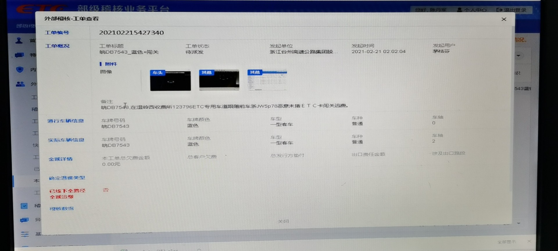 2月20日,溫嶺西收費(fèi)所發(fā)生一起一輛小型客車在ETC車道緊跟前一輛車出站,借此偷逃通行費(fèi),被工作人員發(fā)現(xiàn)后立即上報(bào)監(jiān)控,發(fā)起工單,追繳該車通行費(fèi)。