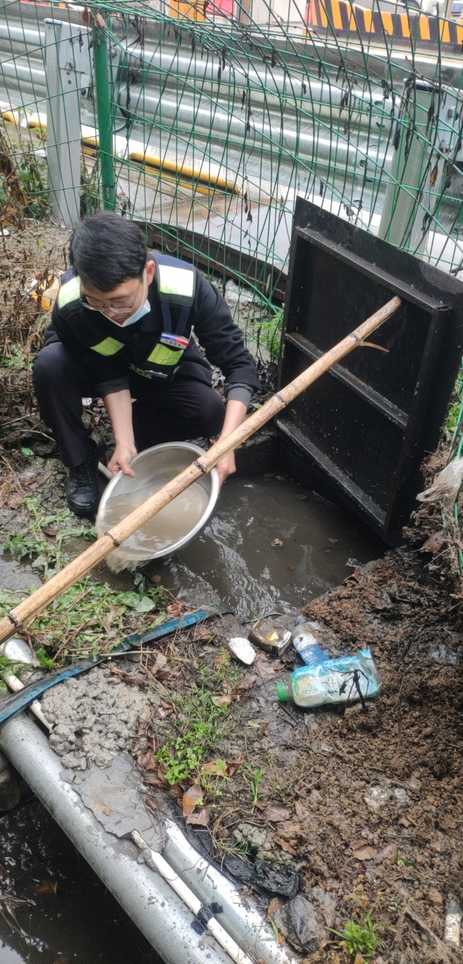 找出原因后,鄭星趕忙跑到所里取來(lái)一個(gè)水盆和一根木桿子。他用木桿支起排水坑上的蓋板,將坑里的積水一盆一盆地舀到旁邊的排水溝里。引導(dǎo)完車(chē)輛的林華平也過(guò)來(lái)協(xié)助鄭星。雖然此時(shí)外面下著雨,但他們?nèi)粵](méi)顧上,只盼著舀水這個(gè)措施能夠有效,11號(hào)車(chē)道能夠早點(diǎn)恢復(fù)使用,進(jìn)口秩序能夠早點(diǎn)恢復(fù)正常。 最后在鄭星和林華平的冒雨搶修下,排水坑里的水位總算有所下降,11號(hào)車(chē)道在關(guān)閉二十多分鐘后終于恢復(fù)使用,進(jìn)口車(chē)輛也恢復(fù)暢通。 因地磅傳感器長(zhǎng)期被雨水浸泡,可能還存在一些潛在問(wèn)題。再者,排水坑里的水位雖有所下降,單憑人力實(shí)在無(wú)法在短時(shí)間內(nèi)排掉剩余積水??紤]到這些問(wèn)題,班長(zhǎng)在搶修過(guò)后又將情況匯報(bào)給了維養(yǎng)中心,維修人員后序針對(duì)地磅問(wèn)題進(jìn)一步展開(kāi)排查和維修工作。 趙育辰