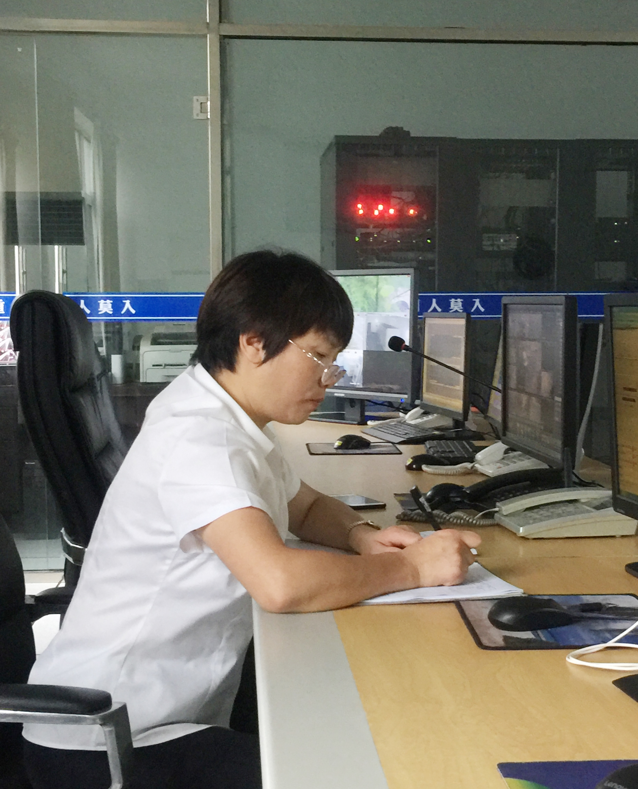 圖為交接班場景 開朗又樂觀,善于團結同事,幾乎是班隊“組織部隊”擔當的“開心果”,她就是三隊中控員金素彬。別看她平時嘻嘻哈哈大大咧咧,工作起來卻一板一眼,來不得半點馬虎。接班上崗時,只見她一手拿筆,架起老花鏡,認真做好中控交接班記錄,仔細檢查監(jiān)視設備運轉情況,確保中控設備都能正常運行。中控室內,幀幀銀屏,一覽車流,幅幅畫面,縱觀隧道南北動向。7月6日下午4點47分,金素彬敏銳地發(fā)現一輛集裝箱拋錨在寧向隧道停車帶,一半車身掛在主車道上,車流如織呼嘯而過,情況十分危險。于是鏡頭切換、廣播呼叫、電話通報、更改信號燈、情報板、追蹤記錄……一切操作有條不紊、井然有序,如同久經沙場的指揮官。就這樣,她又一次通過熒屏和電話,排除安全隱患,保證了隧道的暢通。面對進入倒計時的退休日子,她感慨千萬:“十幾年的中控工作還真是舍不得,如果公司需要,我會義不容辭地留下為公司發(fā)展作貢獻。” 平凡的崗位,普通的中控員,他們為守護隧道的安全暢通奉獻出自己最美好的青春年華,他們默默堅守,日復一日地做著重復而單調的事,卻發(fā)揮著不平凡的作用。 柳媛 林玲