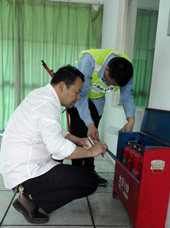 該所副所長應(yīng)錦清帶領(lǐng)隊(duì)員仔細(xì)檢查了南北配電房的機(jī)電設(shè)施,隨后對管理房的干粉滅火器、隧道內(nèi)的泡沫滅火器,配電房、中控室的二氧化碳滅火器進(jìn)行逐一檢查,查看每個滅火器的壓力值、出氣管有無彎折、堵塞、損傷,壓把和閥體等金屬件有無變形和銹蝕,是否還在使用年限之內(nèi)等等,并做好相應(yīng)的檢查記錄。