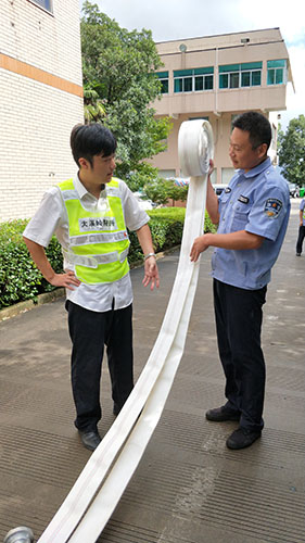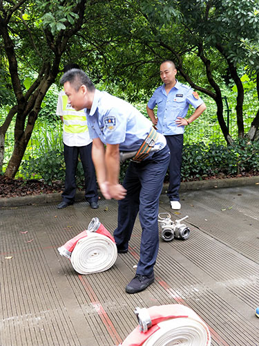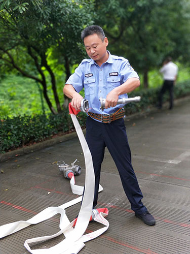 圖為主講人馮常敏操作示范現(xiàn)場 現(xiàn)場,“馮大師”腳下放著兩盤水帶,站姿已成“丁”字步,雙腿微曲,兩拇指與食指握住水帶根部,使虎口以順時針方向?qū)?zhǔn)接口處,做好甩開的準(zhǔn)備?!八Φ谝槐P水帶,要運(yùn)用手腕的力量,要提起水帶并高于地面20到30厘米,再用大臂帶動小臂的力量向前甩出?!?“馮大師”耐心地指導(dǎo)。 接下來是兩盤水帶連接的關(guān)鍵時候,“馮大師”左右手熟練操作,將如何連接的操作細(xì)節(jié)一一展現(xiàn)出來,同時邊操作邊說明注意事項,整套動作連貫又迅速,操作一氣呵成,一旁的新人仔細(xì)觀摩學(xué)習(xí)。