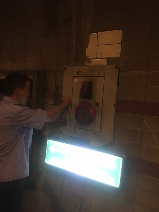 圖為張貼火災(zāi)報警提示標語 此次隧道清洗工作主要針對隧道內(nèi)的機電設(shè)施維修與保養(yǎng),清潔監(jiān)控和照明燈,修復(fù)故障攝像機;檢修消防設(shè)施,如火災(zāi)報警采用點火測試、手動報警、緊急廣播和電話測試,以及檢查消防箱;隧道內(nèi)指示標記檢查,如人通、汽通檢查保養(yǎng),隧道風機檢測,貼安全提示標志,修復(fù)提示燈等。 隊員們放棄休假,加班加點,借著隧道清洗一類施工的有利條件,把隧道內(nèi)需報修的各種設(shè)備進行維修和保養(yǎng),保障了隧道內(nèi)機電、消防設(shè)施的正常運行,排除安全隱患,為即將到來的中秋小長假提供明亮、安全的隧道行車環(huán)境。 陳智慧