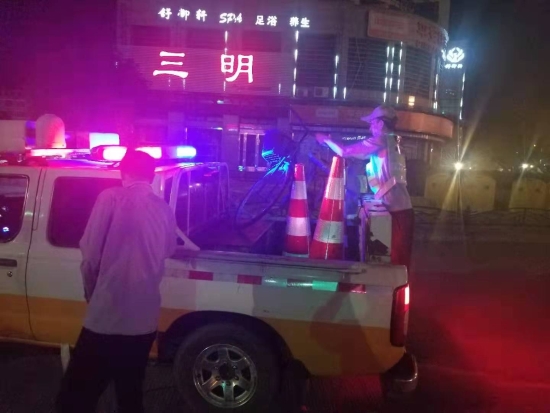 圖為執(zhí)勤隊(duì)送騎車人到大溪鎮(zhèn)