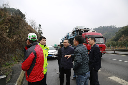 公司總經(jīng)理張建平督查沿線道路養(yǎng)護(hù)整改工作 2月23日下午,公司總經(jīng)理張建平在總工程師江輝的陪同下,同高速路政相關(guān)人員深入一線督查公司所轄高速路段道路養(yǎng)護(hù)整改落實(shí)工作。公司工程部、養(yǎng)護(hù)公司以及監(jiān)理單位相關(guān)人員陪同督查。