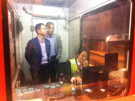 公司副總經(jīng)理董阿林夜訪收費(fèi)所 4月11日晚上,公司副總經(jīng)理董阿林來到沿線四個收費(fèi)所了解現(xiàn)場收費(fèi)工作。征費(fèi)部相關(guān)人員陪同檢查。