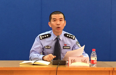 圖為臺(tái)州市公安局交通警察局副局長陳涌解答記者疑問