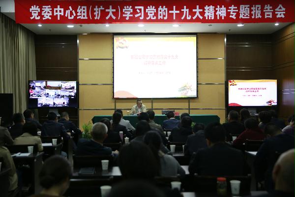 為了深入學(xué)習(xí)好、宣傳好、領(lǐng)悟好、落實(shí)好黨的十九大精神和習(xí)近平新時(shí)代中國特色社會(huì)主義思想,10月30日晚上,集團(tuán)利用周一晚上的時(shí)間在天和大廈26樓召開了黨委中心組(擴(kuò)大)學(xué)習(xí)會(huì),特別邀請了市直機(jī)關(guān)工委副書記李欠梅做了題為《邁向新時(shí)代開啟新征程續(xù)寫新篇章》的專題解讀和輔導(dǎo)報(bào)告。集團(tuán)黨委副書記、總經(jīng)理張建平對學(xué)習(xí)領(lǐng)會(huì)落實(shí)黨的十九大精神進(jìn)行了全面部署,要求在集團(tuán)上下迅速掀起學(xué)習(xí)熱潮,廣大員工要立足崗位加油,推動(dòng)集團(tuán)實(shí)現(xiàn)“浴火重生謀新篇”的目標(biāo)。大樓全體員工參加現(xiàn)場會(huì)議,各所、中心的非當(dāng)班員工通過遠(yuǎn)程視頻會(huì)議系統(tǒng)同步收看輔導(dǎo)講座。