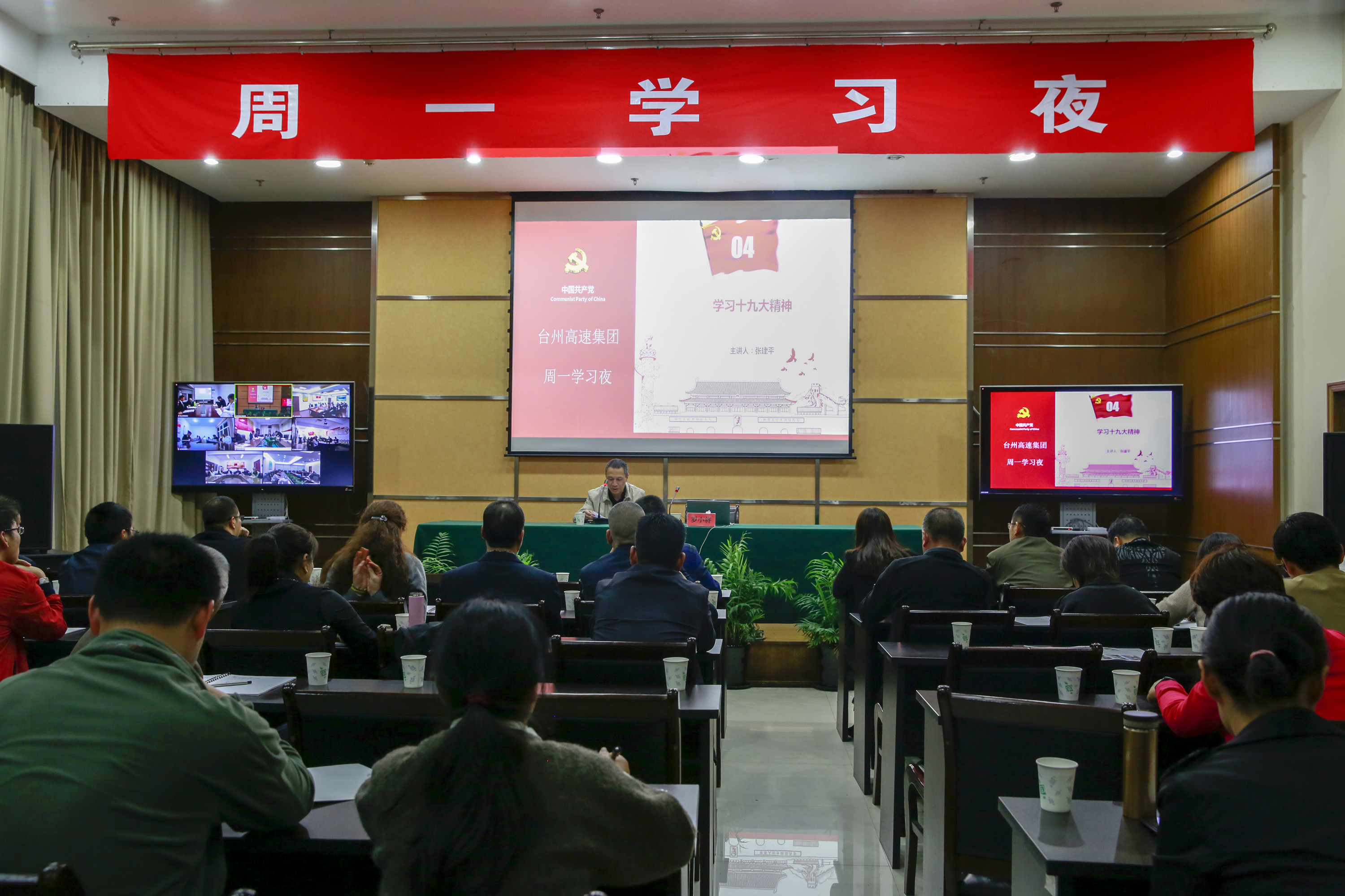 圖為參加學(xué)習(xí)夜的全體黨員干部和職工 學(xué)習(xí)夜上,集團(tuán)副總經(jīng)理羅小將圍繞2017年椒江樓市情況,以集團(tuán)正在開發(fā)的文鼎苑樓盤為例,深入分析項(xiàng)目周邊城西板塊規(guī)劃,以及介紹臺州經(jīng)濟(jì)開發(fā)區(qū)土地市場階段性對比、未來樓市走向等內(nèi)容。 大樓、子公司全體員工參加學(xué)習(xí)夜,各所、中心的非當(dāng)班員工通過遠(yuǎn)程視頻會議系統(tǒng)同步學(xué)習(xí)。 陳林偉