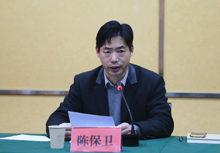圖為集團(tuán)副總經(jīng)理陳保衛(wèi)主持會(huì)議