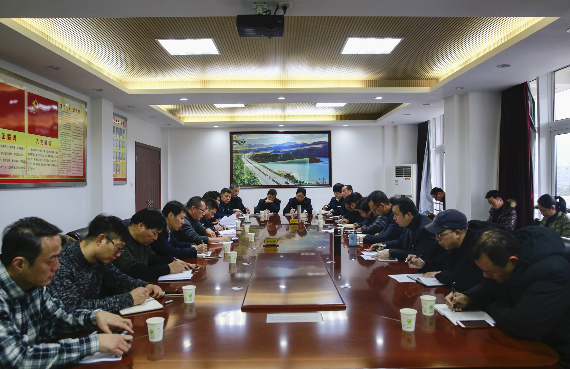圖為會議現(xiàn)場 會議指出,今年春運是黨的十九大勝利召開后的第一個春運,也是公司學習貫徹十九大精神并落實到新年開局工作中的首項重大任務。對此,公司從早準備、從實安排,并于22日起,連續(xù)多日開展了春運安全生產(chǎn)大檢查,為提高本次會議的質(zhì)量和效率發(fā)揮了重要作用。 章海峰指出,春運工作不是單兵作戰(zhàn),各部門要牢固樹立“高速一家人”的意識,以對人民生命財產(chǎn)安全高度負責的態(tài)度,上下齊心,通力協(xié)作,確保春運安全有序。他要求,要全力抓好各項措施落實,強化監(jiān)督檢查,及時處置隱患,不斷細化和完善應急預案,確保應急處置及時到位。要嚴格實行24小時值班和信息報送制度,做到有事報事,無事報平安。春運期間要加強與各兄弟單位的密切聯(lián)系,互通信息,切實做到高速一家,同路同心,形成保障春運工作合力。同時,要持之以恒提供優(yōu)質(zhì)服務,開展春運期間送溫暖志愿服務活動,把臺州高速文明服務的溫暖傳遞到過往司乘人員心中。另外,要做好春運工作的宣傳報導,及時發(fā)布春運動態(tài),營造良好的春運氛圍。 會上,江輝、項同富結合日常檢查發(fā)現(xiàn)的問題,分別就道路養(yǎng)護、施救、安全生產(chǎn)等方面作了強調(diào)與要求。與會各部門、所、中心負責人逐一匯報了春運準備工作情況。各兄弟單位負責人從各自職責出發(fā),針對今年春運工作中的重點、特點和要點,先后提出了中肯的建議與意見。 張琛