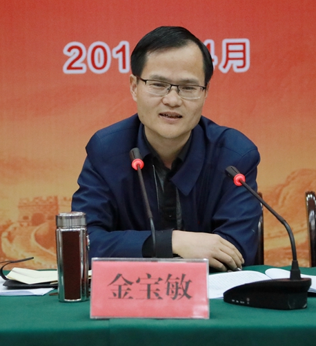 圖為市交投集團黨委副書記、副董事長、總經(jīng)理金寶敏出席會議并發(fā)表重要講話