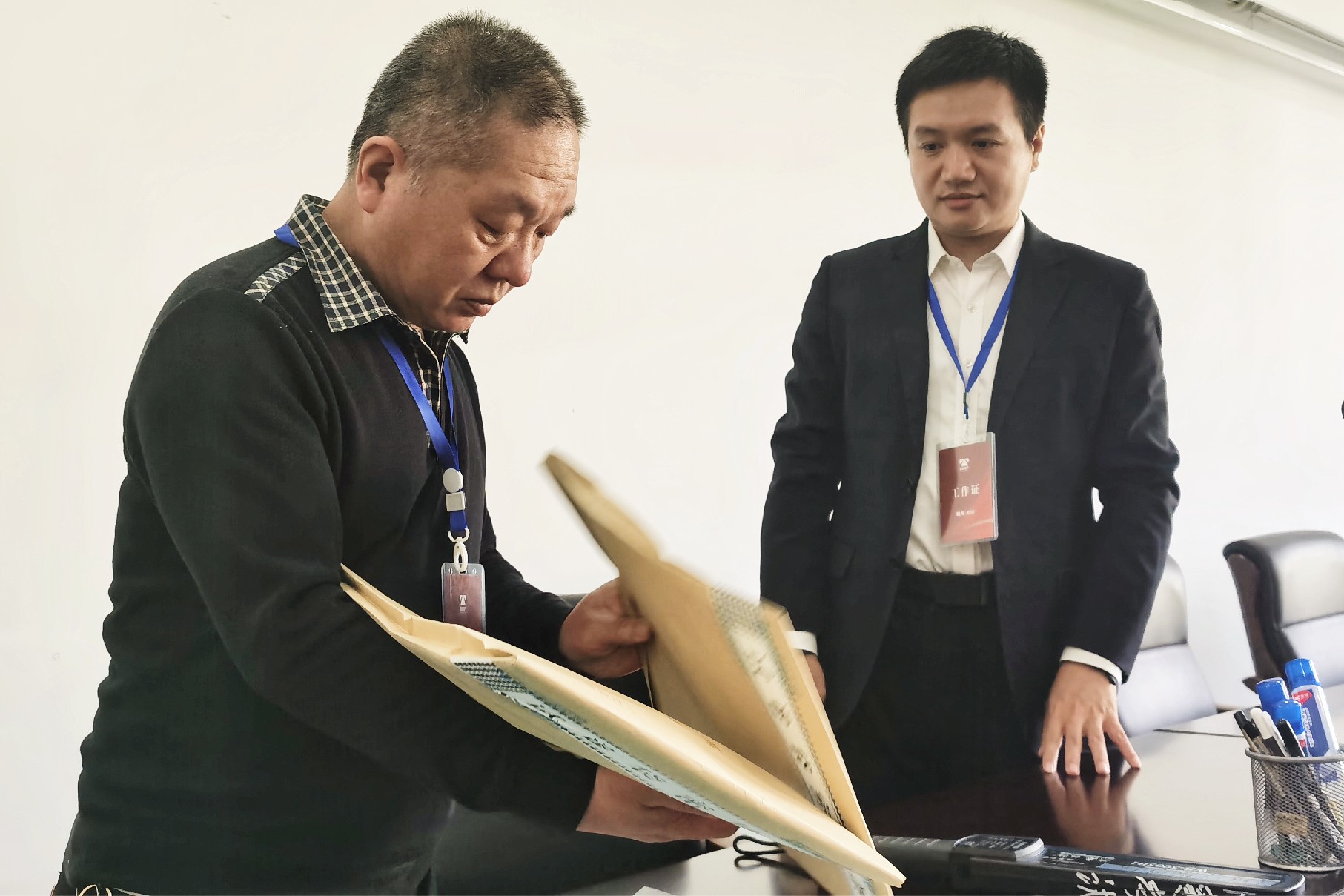 (圖為董事長(zhǎng)汪利國(guó)、總經(jīng)理彭?xiàng)钴?、監(jiān)察室主任邵克于現(xiàn)場(chǎng)巡查監(jiān)督)