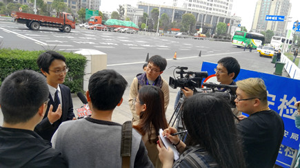 圖為記者在收費站附近采訪當晚征費四班值班班長鄭星 “那天晚上,原本只開1號、3號、4號三個車道的,因為該駕駛員鬧事,為保證通行秩序,收費站后來先后加開2號、5號車道?!痹谀峭碇蛋嗟恼髻M四班班長鄭星告訴大家。駕駛員對免通行政策、免通行時間段還存在誤解的情況,之前收費站也存在過駕駛員拒付通行費的現(xiàn)象,但沒有像此次拒付時間長、影響又惡劣的。