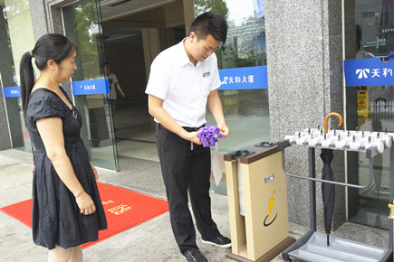 圖為物業(yè)公司工作人員幫助來客折傘 為提高物業(yè)管理質(zhì)量,營(yíng)造安全、舒心的大樓環(huán)境,前段時(shí)間,辦公室根據(jù)大樓實(shí)際情況和業(yè)主需求,精心制定更換物業(yè)方案,擴(kuò)大選擇物業(yè)公司至全省范圍,深入調(diào)查了解有選擇意向的物業(yè)公司,并通過現(xiàn)場(chǎng)考察以及經(jīng)由天和大廈業(yè)委會(huì)開會(huì)決定,最終敲定浙師大印象物業(yè)管理有限公司負(fù)責(zé)本大樓物業(yè)管理。 5月1日,該物業(yè)公司正式入駐大樓,開啟了新物業(yè)管理改革風(fēng)潮,在服務(wù)質(zhì)量、人員形象、崗位職責(zé)、保潔等方面進(jìn)行了全面整改。對(duì)比原先的物業(yè)公司,他們不僅增加人員配置,還提高上崗人員形象、素質(zhì)要求,整體改善大樓一些臟、亂的環(huán)境,設(shè)立服務(wù)中心前臺(tái)、統(tǒng)一規(guī)范業(yè)主廣告位、在大廳放置沙發(fā)以接待訪客等,尤其在大樓正門入口一側(cè)設(shè)立形象崗,同時(shí)根據(jù)大樓用戶需要,分別在大樓A、B幢放置快遞柜,方便用戶取用物品。為了大樓安全,該物業(yè)公司還摸底各樓層工作人員名單、聯(lián)系方式、具體辦公地點(diǎn),以防陌生人員無故闖入大樓。 據(jù)該物業(yè)公司副總經(jīng)理霍正佩介紹,其公司要求形象崗上的工作人員要規(guī)范使用迎賓用語,同時(shí)服務(wù)中心前臺(tái)客服人員上班時(shí)間延長(zhǎng)至晚8點(diǎn),以更好地滿足部分業(yè)主需求。 在此期間,公司辦公室一直持續(xù)跟進(jìn)物業(yè)交接、整改工作,共同完善物業(yè)管理,創(chuàng)造大樓新形象。在新物業(yè)入駐第二天,公司安保部便對(duì)安全生產(chǎn)工作情況進(jìn)行了全面檢查,并提出整改建議。 陳林偉