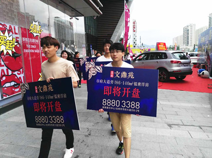 圖為文鼎苑銷售部人員在商場(chǎng)內(nèi)開展宣傳活動(dòng) 在活動(dòng)現(xiàn)場(chǎng),參加人員一邊做陶藝,一邊詢問樓盤詳細(xì)情況,氣氛十分熱烈。同一時(shí)間,在萬達(dá)廣場(chǎng)和銀泰商場(chǎng)內(nèi),文鼎苑銷售部的帥哥美女們手持樓盤開盤廣告宣傳牌,他們一個(gè)個(gè)面帶笑容、朝氣蓬勃、專業(yè)細(xì)致地為前來咨詢的客戶講解樓盤的具體情況。宣傳隊(duì)伍所到之處,吸引了大批客戶的關(guān)注。 以上活動(dòng)是文鼎苑項(xiàng)目首批開盤前期營銷推廣中的其中一個(gè)環(huán)節(jié)。為營造良好的銷售氛圍,在前期,仁和公司通過大型戶外廣告、微信公眾號(hào)實(shí)時(shí)更新、新聞媒介重點(diǎn)發(fā)布等,陸續(xù)進(jìn)行多方位媒體宣傳攻勢(shì)。同時(shí),謀劃舉辦了“文鼎苑家風(fēng)征集活動(dòng)”、立夏、母親節(jié)、“520與愛相約”、端午節(jié)、兒童節(jié)等節(jié)假日專題宣傳活動(dòng)。此外,還安排了銷售人員在周末深入椒江拆遷區(qū)進(jìn)行拓客派單活動(dòng)。 目前,高速房產(chǎn)集團(tuán)的員工們正戮力同心,奮力拼搏,為全力打響文鼎苑首期開盤炮而努力奮戰(zhàn)。 包啟曉