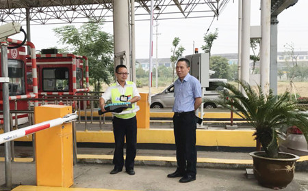 圖為集團(tuán)副董事長、總經(jīng)理張建平在溫嶺西收費所檢查