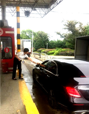 信息就是命令,臺州南收費所第一時間將ETC切換成了人工收費模式。但是增加了一個車道仍是無法緩解這排山倒海之勢的車流量,最高峰時,該路段一度排起了約10公里的長龍,密密麻麻的車輛都在等著出站,保暢群里告急聲聲。臺州南收費所所長王益民坐不住了,一邊去電維養(yǎng)中心“能否將進口的一個車道改成出口車道?”,一邊帶領行政人員趕往副站協(xié)助分流。針對進口人工車道的電腦被收費程序占用,提前根據(jù)車型在通行卡上寫好類別,安排人員在車道上進行發(fā)放。不斷奔跑著發(fā)卡,數(shù)不清的來來回回,全心投入在保暢工作中的員工們竟不覺得乏累。同時,還特地在外廣場擺放友情提示牌,讓過往司乘可以多渠道提前了解通行信息。此情此景,不少過往司乘人員都不由地伸出了大拇指,為臺州高速創(chuàng)新的收費模式和貼心的文明服務點贊。