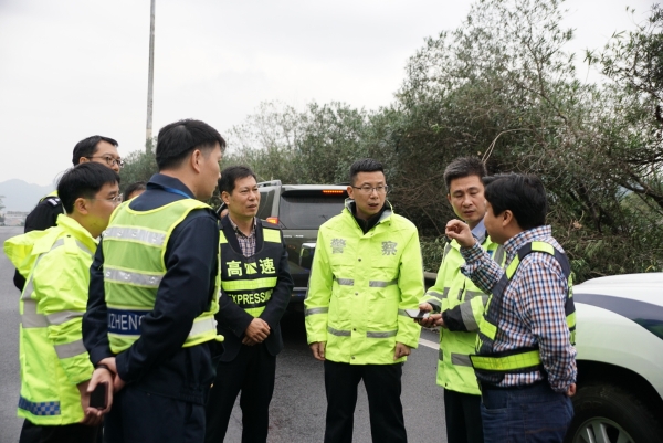 集團聯(lián)合高速交警、路政檢查第一階段斷流施工情況 11月7日上午,集團聯(lián)合高速交警、高速路政等單位實地踏勘了集團沿線斷流施工現(xiàn)場,檢查第一階段施工進展情況及現(xiàn)場交通管控點、收費站分流點交通流等情況,集團總工程師江輝、高速交警臺州支隊副支隊長沈汝寬、高速路政領導參加檢查。