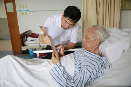 圖為老干部陳幸均在病床上簽訂股權(quán)轉(zhuǎn)讓手續(xù)