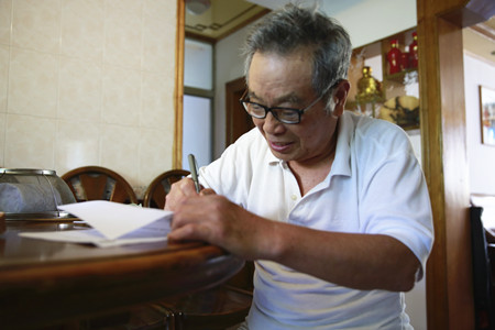 圖為老干部陳肇基簽訂股權(quán)轉(zhuǎn)讓手續(xù)