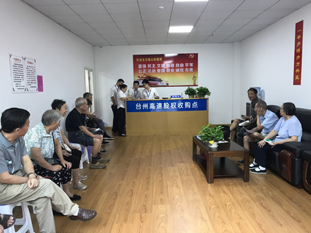各收購點從一開始接收的第一筆股份轉(zhuǎn)讓,到現(xiàn)在大大小小股份協(xié)議書的簽訂,形形色色的股東都表示很支持和理解臺州高速股權(quán)收購工作,相繼前來轉(zhuǎn)讓股份。有的股東在轉(zhuǎn)了自己的股權(quán)后又立馬發(fā)動親戚好友前來辦理轉(zhuǎn)讓;有的近90歲高齡了還親自到收購點,耐心聽工作人員講解細節(jié)內(nèi)容;有的稱多出的十多倍收益為意外之喜;有的甚至悔恨當年為何不多將資金投到臺州高速……可愛可敬的臺州高速股東們!