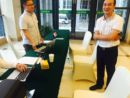 圖為集團(tuán)董事會(huì)秘書王雍在天臺(tái)駐點(diǎn)指導(dǎo)