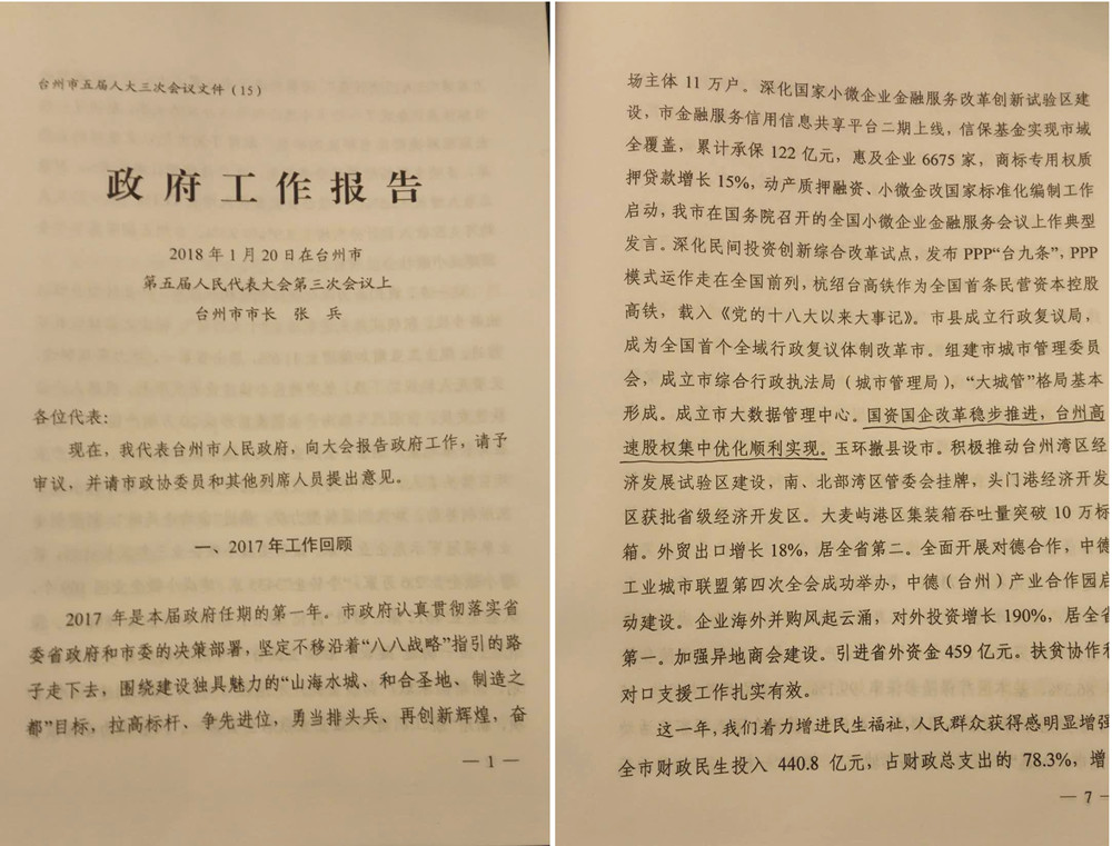 臺州市五屆人大三次會議于1月20日上午如期召開,“國資國企改革穩(wěn)步推進(jìn),臺州高速股權(quán)集中優(yōu)化順利實(shí)現(xiàn)”,寫進(jìn)了《政府工作報(bào)告》。