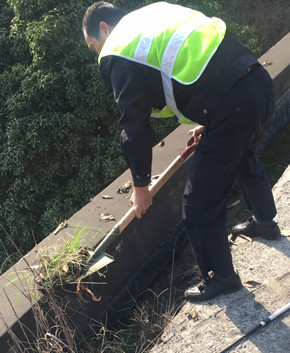 圖為清理后的屋頂排水溝 大溪嶺隧道管理所依山而建,落葉、塵土、沙石堆積極容易造成排水溝的堵塞,如汛期來臨,排水溝堵塞造成的隱患無窮。 所執(zhí)勤隊根據(jù)安排,排查配電房、管理房等汛期容易受災害影響的隱患,遵循“發(fā)現(xiàn)一處整治一處,整治一處銷號一處”的原則,對配電房、管理房的屋頂排水這一安全隱患和薄弱環(huán)節(jié)進行清理,以實際行動落實整改和消除隱患,確保2018年安全度汛。 陳智慧