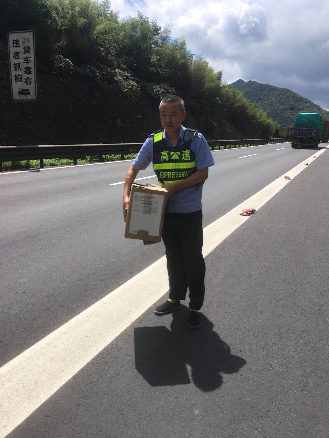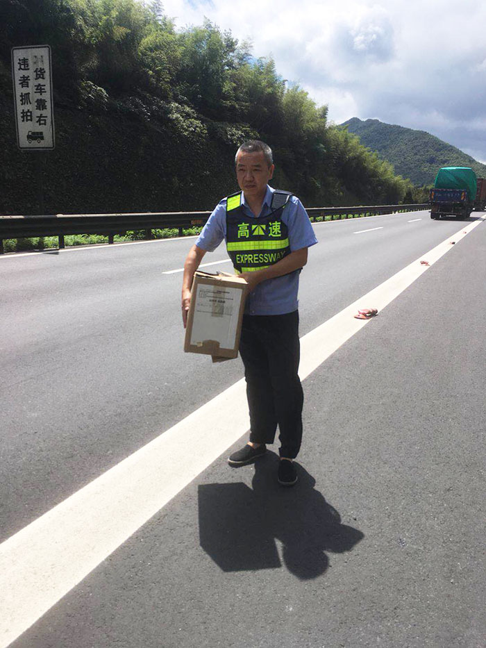 “咦,那邊路上有一個(gè)紙箱,快開過去看看?!?月24日上午10點(diǎn)左右,黃土嶺隧道所執(zhí)勤隊(duì)進(jìn)行日常巡邏時(shí)發(fā)現(xiàn)高速路上立有一個(gè)紙箱,為了不影響交通,執(zhí)勤隊(duì)員立即將包裹挪離路面,排除安全隱患,避免影響車輛正常通行。 這個(gè)紙箱是一份快件,大約十來斤重,上面赫然貼著包裹的信息,由山東發(fā)往溫州樂清市的汽車配件。這樣的大包裹遺失,失主知道后肯定萬分著急!執(zhí)勤隊(duì)員為了讓這滑落的包裹盡快找回主人,一遍遍撥打快件單上那字跡模糊的電話號(hào)碼,經(jīng)多方詢問終于找到了該家物流公司負(fù)責(zé)人。