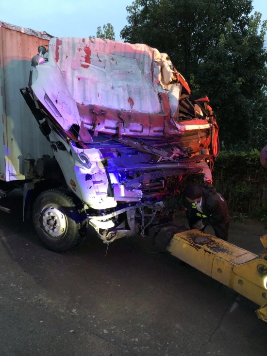 7點30分,經(jīng)過半小時的努力,在輔查員在一旁指揮下,拖車用纜繩進(jìn)行牽引,吊車配合,將車頭放置可以正常拖曳的地方。