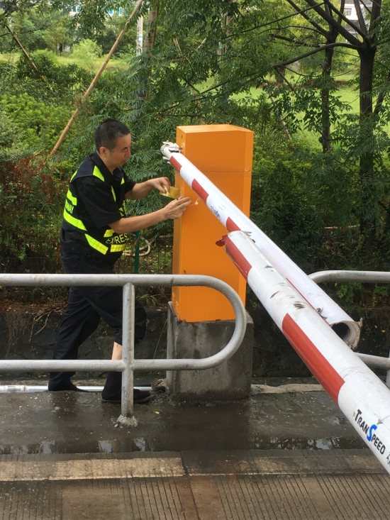 增強(qiáng)機(jī)電設(shè)備防水措施。集團(tuán)收費(fèi)站有很多機(jī)電設(shè)備直接安裝在戶外,因外層有開關(guān)柜保護(hù),一般雨水是無法滲透的。可一旦遇上臺(tái)風(fēng)雨等惡劣天氣就很難確保內(nèi)部設(shè)備不會(huì)被打濕,尤其是計(jì)量柜里面的計(jì)重設(shè)備,一旦短路損壞會(huì)立即造成車輛擁堵。因此,剛完成高桿燈下降工作中心隊(duì)員顧不上休息,又馬不停趕赴收費(fèi)所將計(jì)量柜、欄桿機(jī)等重要設(shè)備用封帶紙進(jìn)行密封處理,不漏過任何一處可能進(jìn)水的地方,大大增強(qiáng)了這些設(shè)備防水性能。