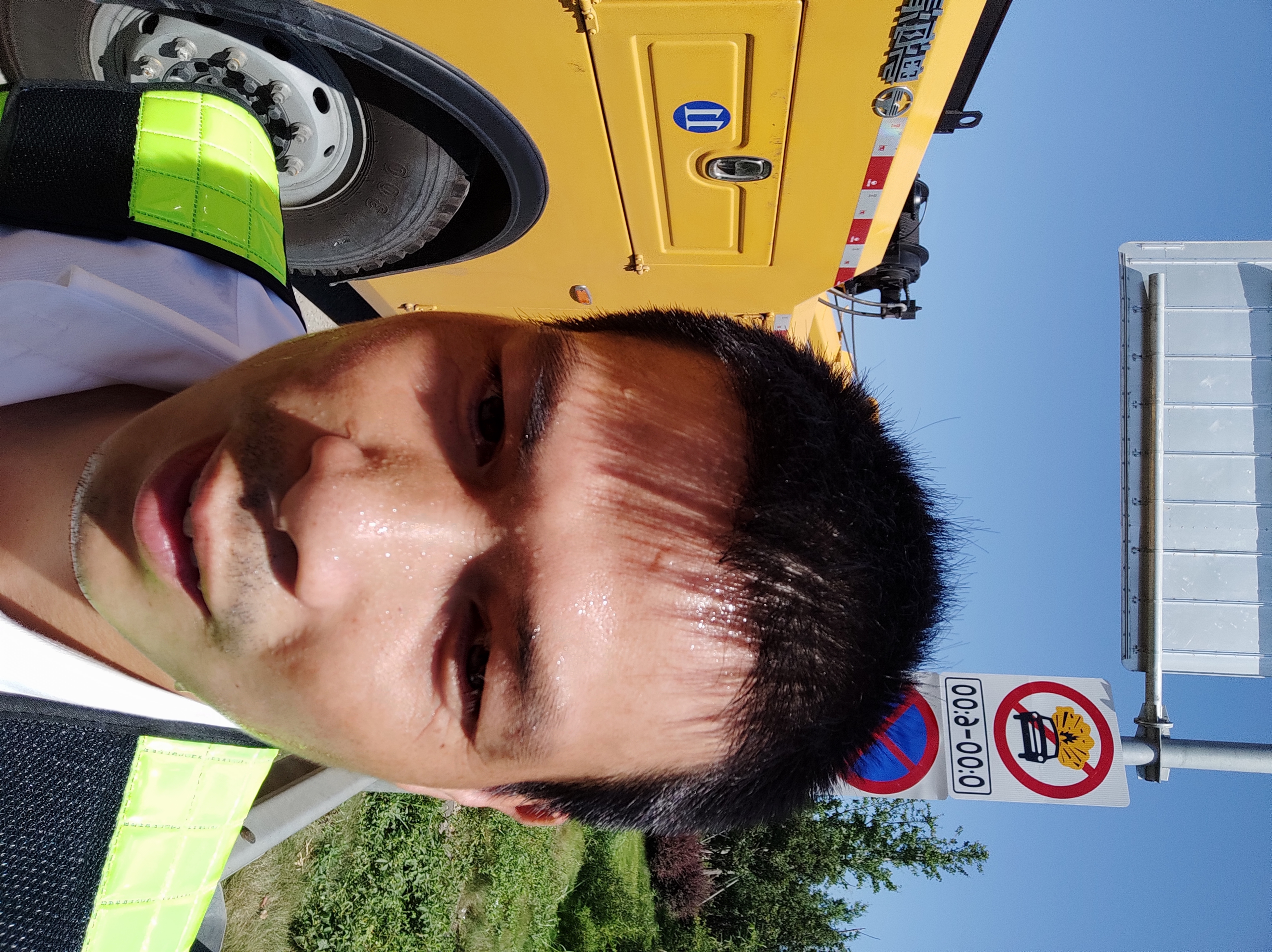 “這地面溫度已經(jīng)超過(guò)70℃了吧,滾釘燙!”為了擺正車叉位置,阮文標(biāo)頂著酷暑爬到車底調(diào)整位置,爬出來(lái)的時(shí)候,手隔著手套都被燙紅了。