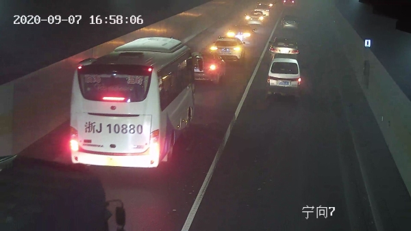 車(chē)子剛進(jìn)入隧道,火眼金睛的中控員徐海源立即察覺(jué),鎖定該畫(huà)面,經(jīng)過(guò)仔細(xì)辨認(rèn),該車(chē)沒(méi)有火光源,可能是車(chē)輛故障導(dǎo)致的。由于貨車(chē)不停地冒出濃煙,散發(fā)的濃煙彌漫在整個(gè)隧道里,造成隧道內(nèi)的車(chē)輛視線不清,人員呼吸困難,后方途經(jīng)車(chē)輛紛紛打開(kāi)雙閃燈,或緩行、或停車(chē)、或避讓,一時(shí)間,交通秩序混亂,大量的車(chē)輛滯留在隧道里,而后方來(lái)車(chē)越來(lái)越多,情況越來(lái)越緊急。中控員見(jiàn)狀,第一時(shí)間向監(jiān)控中心匯報(bào)情況,監(jiān)控中心要求密切關(guān)注該輛車(chē)的行駛情況,同時(shí),把該情況報(bào)告給執(zhí)勤隊(duì)長(zhǎng)蔡星,他要求中控員打開(kāi)寧向排風(fēng)扇,正向排風(fēng),疏散濃煙,同時(shí)做好應(yīng)急準(zhǔn)備工作。