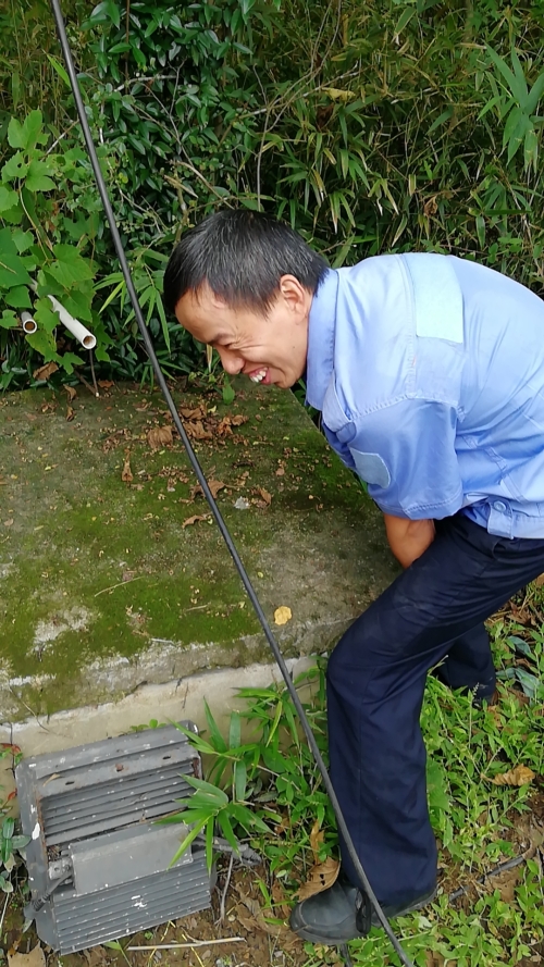 為保障隧道消防安全,中控對(duì)消防水池的水位需時(shí)時(shí)關(guān)注,萬一水池漏水無法及時(shí)查看,如遇火災(zāi),消防水供應(yīng)不上,后果不堪設(shè)想。隊(duì)長(zhǎng)意識(shí)到事情的嚴(yán)重性,即刻安排電工湯寧光和陳幸趕往北面山上的高位水池位置。初秋的山上植物茂盛,原來通往水池的小路早已淹沒在雜草間,隊(duì)員們提著工具,憑著記憶找小路,單手撥開雜草往山上走,到達(dá)高位水池之后,他們分工協(xié)作一邊檢查線路,一邊抬開井蓋水池檢查照明燈,經(jīng)過檢查后發(fā)現(xiàn)只是線路有點(diǎn)松動(dòng),陳幸馬上對(duì)線路進(jìn)行加固。