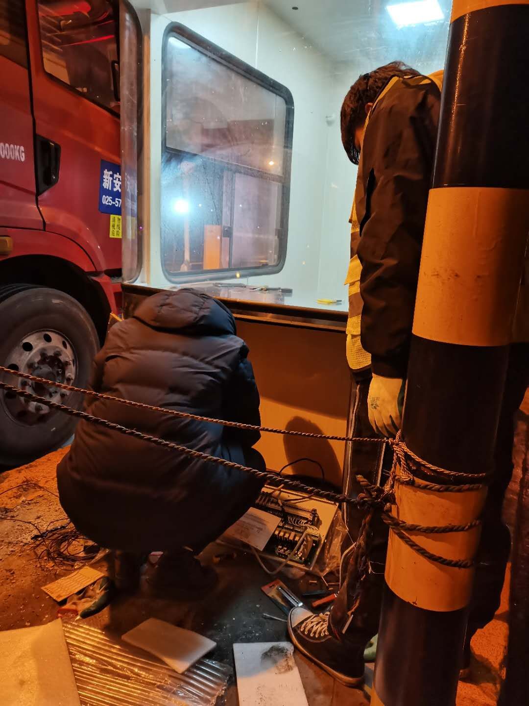 1月20日,公司董事長、總經(jīng)理陳文波到收費所現(xiàn)場查看,要求加快速度抓緊搶修崗亭,重新安裝好各項設備設施,盡快開通車道。接到任務后,維養(yǎng)中心緊急召開會議討論,制定新崗亭安裝、設備調(diào)試方案。 21日下午4點左右,訂購的新崗亭和損壞的設備設施陸續(xù)到位,中心值班人員協(xié)同設備廠家一起將其安放并固定至車道原位置。因崗亭傾倒時拉斷了底下很多線纜,在拆除設備時又因為緊急搶修需要沒有作相應標注,現(xiàn)場各種電線接頭雜亂如麻??紤]到夜間查線、接線存在一定的安全隱患,也不利于施工,搶修人員決定第二天再戰(zhàn)。