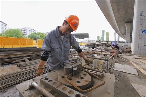 “綁鋼筋也是個技術活。”馬進學告訴記者,8#立交工程中,像他這樣的鋼筋工就有100多號人,他們按照設計將鋼筋進行布置和固定,形成建筑的骨架。馬進學熟練地把一組加工好的鋼筋綁扎到結構上,這樣的工序,他一下午能做20多組。