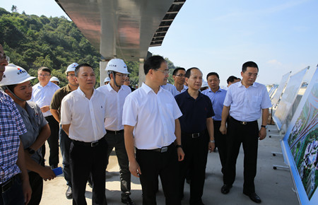 圖為市委書(shū)記王昌榮在內(nèi)環(huán)路江口段查看工程進(jìn)度
