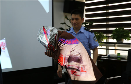 圖為員工學(xué)習(xí)防煙面罩的使用 課上,員工們聽(tīng)地十分認(rèn)真,并且積極地參與了互動(dòng),學(xué)習(xí)了使用滅火器和佩戴防煙面罩。課后,全體人員還跟著教官手把手學(xué)習(xí)了水帶鋪設(shè)和連接。